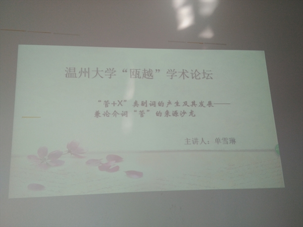10月16日下午16时,买足球的app软件推荐研究生“瓯越”学术论坛项目之——《“管+X”类副词的产生及其发展——兼论介词“管”的来源》沙龙在人文楼213会议室顺利举办。该项目由买球App软件手机在线下载2016级汉语言文字学研究生单雪琳主持,16级汉语言文字学、语言学与应用语言学的研究生参与了本次活动。