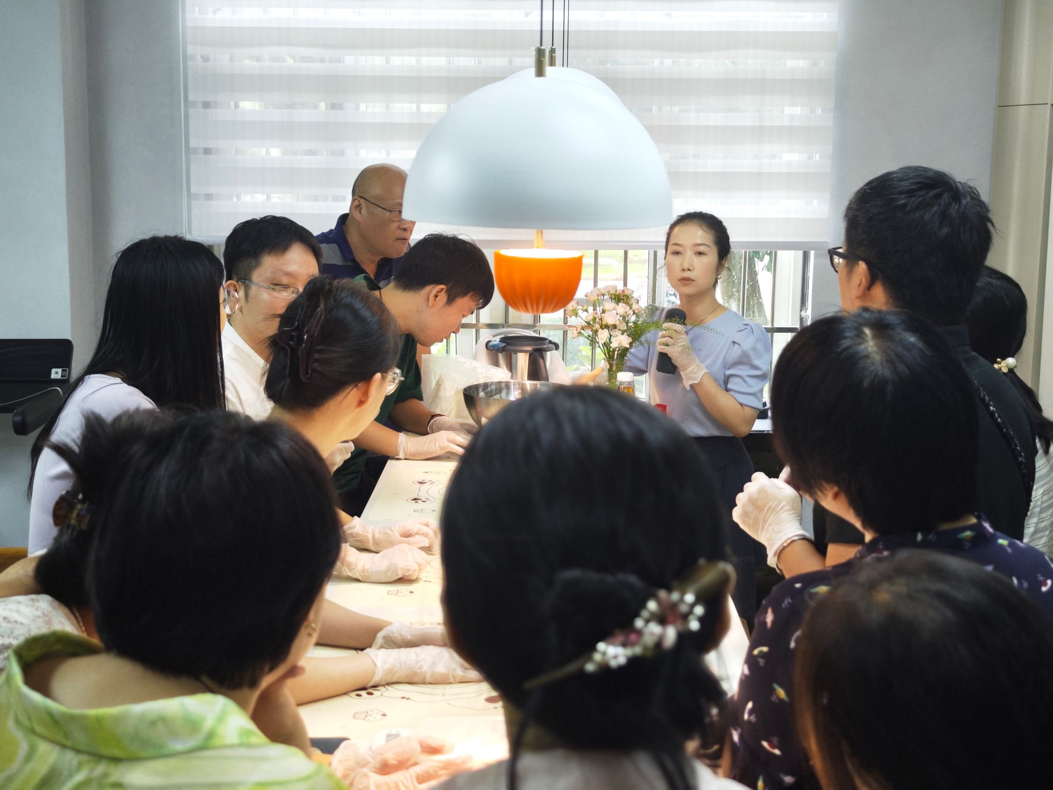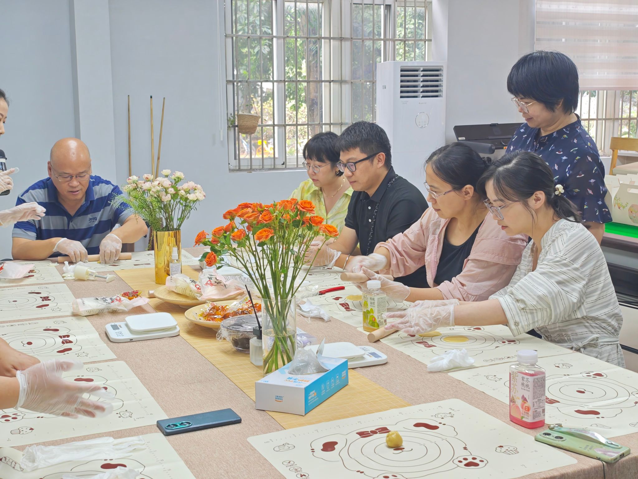 活动过程中,老师们按照步骤进行操作:揉面、称量、包馅、压模,每一个环节都有条不紊。部分老师对面点制作较为熟悉,动作利落,而初次尝试的老师们则在学习中不断摸索。随着月饼逐渐成型,现场氛围愈加专注而活跃。待月饼出炉后,广式月饼色泽金黄、油亮诱人,冰皮月饼则晶莹清爽。大家依次认领自己的作品,并进行现场品尝与交流。不同口味的尝试让大家在轻松氛围中进一步体会到节日的仪式感和手作的成就感。