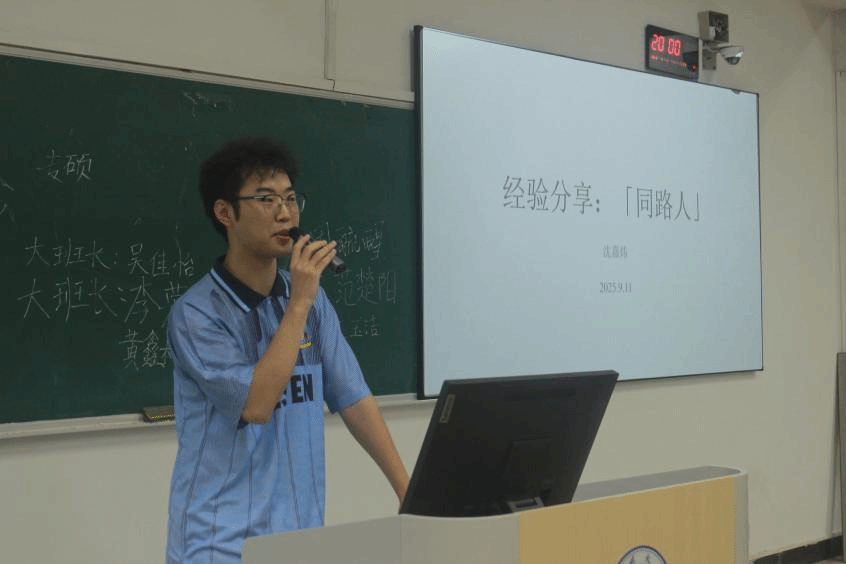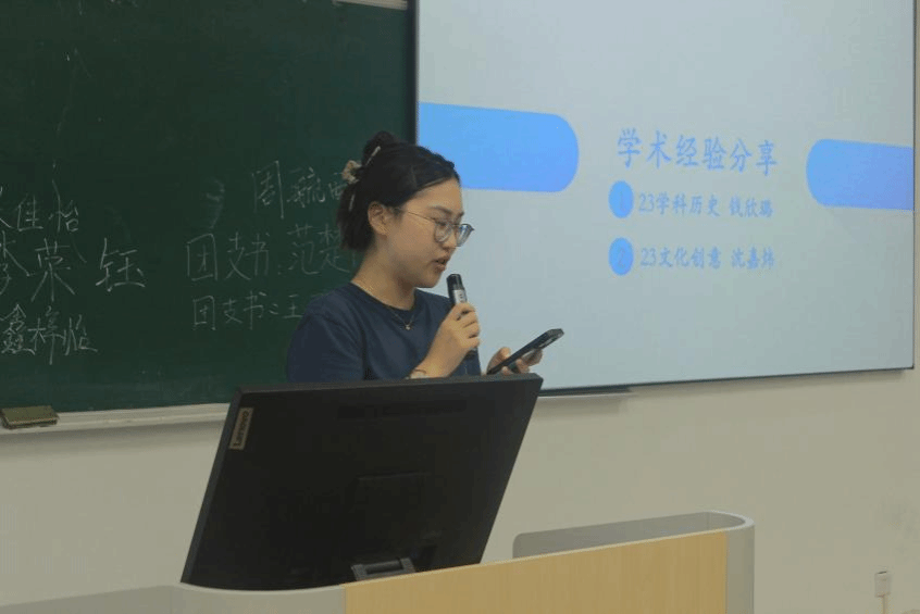 而后,23学科教学(历史)钱欣璐同学、23文化创意沈嘉炜同学作为优秀老生代表,向新生分享学习经验。钱欣璐学姐结合自身参赛经历,向新生们细致分享了相关比赛的准备过程与成功经验,并从师范技能提升、赛事参与技巧等方面,给出了极具针对性的实用建议。沈嘉炜学长以自身学术经历为蓝本,向新生们分享了关于自己研究生生活与成长的感悟,并且鼓励大家在学术道路上勇敢接受自己,砥砺前行。