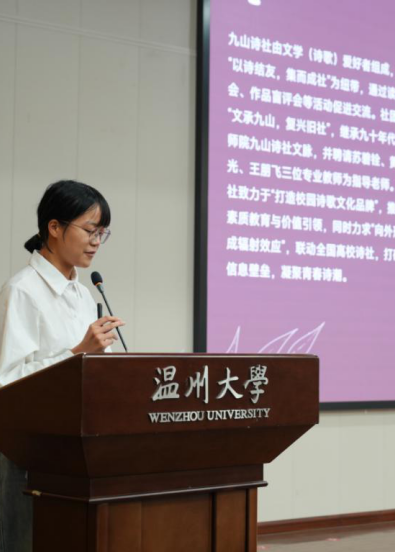 丰富多彩的社团介绍将现场气氛推向高潮。九山诗社副社长李胜男、露浓话剧社副社长邓宇豪、瓯越春秋社组织部部长金周彬、文字作坊社副社长江虹羲依次登场,以各具风格的方式展示了买球App软件手机在线下载挂靠社团的特色文化与人文气息,充分彰显买球App软件手机在线下载的生机与魅力,引来掌声阵阵。