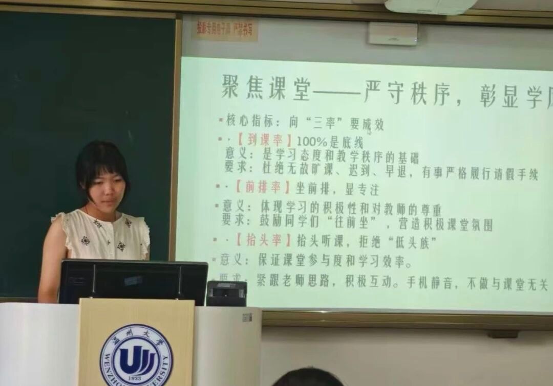 其次,对于课堂之外,各班对同学们的日常行为规范提出了明确期望。包括倡导文明礼仪,维护校园环境,遵守宿舍管理规定等,号召大家从点滴做起,规范自身行为,展现温大学子的良好风貌。