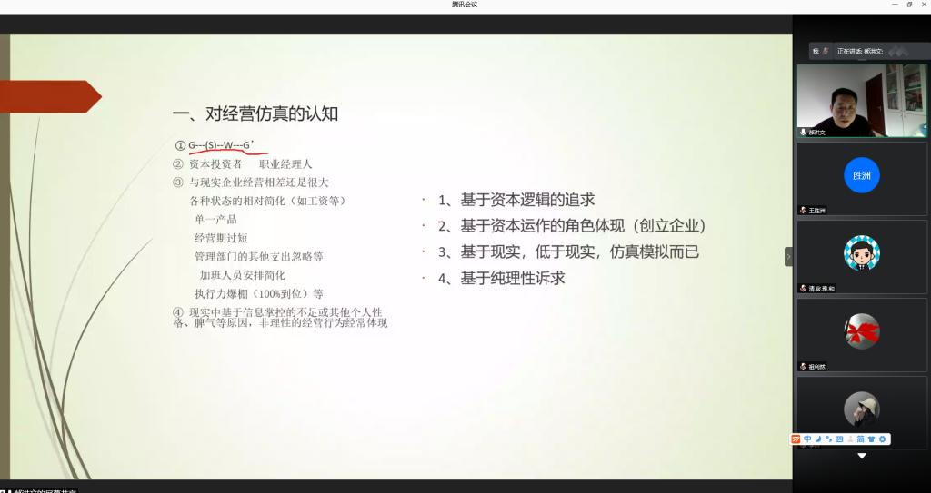 为提升参赛师生对赛事的认知水平,加强师生对规则的深度理解,助力师生构建系统战略思想,做到以赛促学,学院于1月24日下午,通过腾讯会议,举办企业运营仿真竞赛线上培训。培训由副院长王胜洲主持,企管系资深教师郝洪文主讲,院党委副书记梁泽锋、各系正、副主任以及各参赛团队指导教师和150余名参赛学生参加培训。