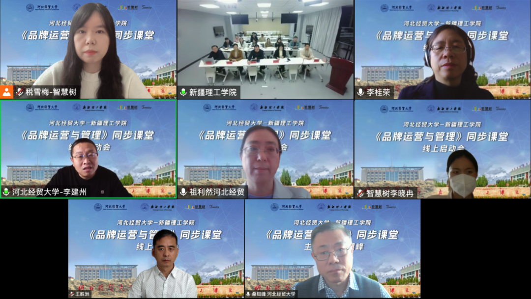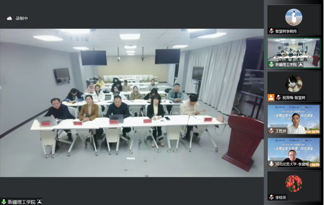 为响应教育部高教司 “慕课西行”和虚拟教研室建设号召,加深专业建设、课程建设合作交流,推进教学创新探索研究,12月10日,Beat365中文官方网站-新疆理工学院《品牌运营与管理》课程“慕课西行”同步课堂启动仪式在线上圆满举行。Beat365官网院长李桂荣、副院长王胜洲、市场营销系党支部书记兼本次同步课堂主讲教师桑银峰、系主任李建州、副主任祖利然,新疆理工学院经济贸易与管理学院党支部书记邓浩、副院长王艺、教学办主任刘娜、市场营销专业教研室主任董伟平,本次同步课堂课程负责人程登军,智慧树网河北省区运营总监梁道儒、新疆维吾尔自治区总监王龙出席会议,两校市场营销专业相关老师参会。启动仪式由李建州主持。