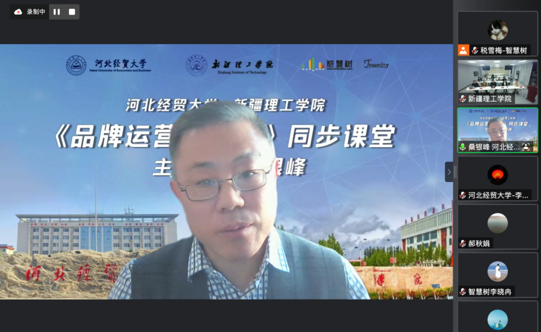 桑银峰副教授与新疆理工学院程登军老师分别介绍了两校《品牌运营与管理》课程基本情况,并就本次同步课堂的内容和形式做了有效的沟通交流。12月12日,桑银峰副教授将为新疆理工大学市场营销专业的师生线上分享品牌管理课程,后续Beat365官网还将与新疆理工大学在其他课程中共上一门课。