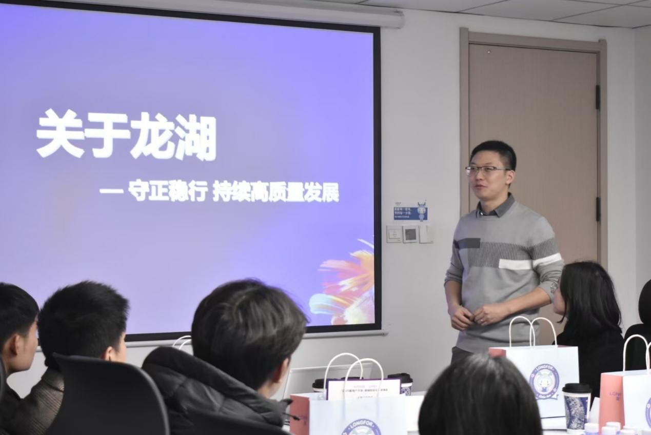 本次访企拓岗活动分为行业认知、对话未来的自己、营销流程深度体验、模拟营销与实战演练四个部分。在张吉的主持下,几位负责人就龙湖集团与集团人才培养项目的基本情况进行了阐释。申晨提道,龙湖集团是一个规模庞大、理念先进、发展多元的世界500强企业,秉持着“善待你一生”的理念,在地产开发、商业投资、资产管理、物业管理、智慧营造五大航道并驾齐驱。“绽放”项目是龙湖集团为了提高企业竞争力,面向应届毕业生的人才发掘培养项目。随后纪文强、李安、孙春斌分别向同学们讲述了自己在龙湖集团的任职经历及工作感悟。在交流互动环节,同学们踊跃发言与提问,相关负责人结合自己的亲身经验对同学们关心的问题进行了详细解答。