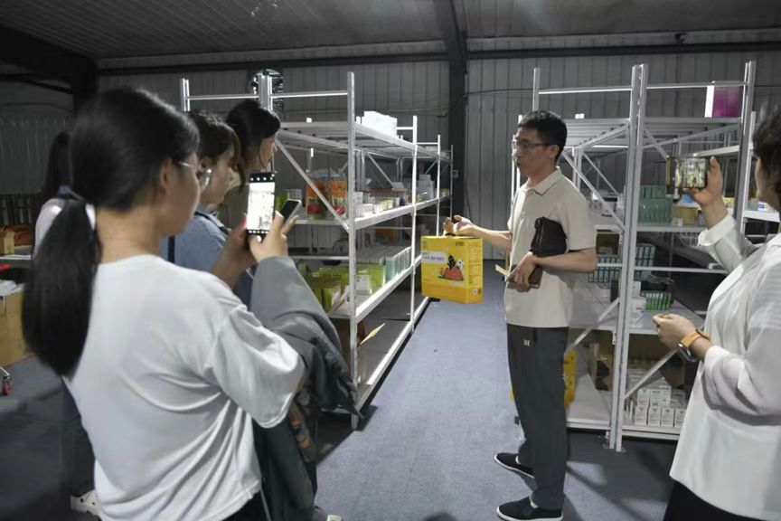 上午,在中象云仓(石家庄)医药科技有限公司,刘小坤总经理带领学院师生参观了办公楼与现代化仓储库房。刘小坤介绍到,库房共分为两层,每层各司其职:一楼主要负责供给批发商,二楼主要负责供给药房、其他网店、散客和自营。两种供给相配合,全面覆盖了客户需求,扩大了客群范围。同时公司也将多种药品上架美团、饿了么、拼多多等电商平台,紧跟当今电商发展的风口,进行网格化管理运营,全面覆盖不同区域商铺。