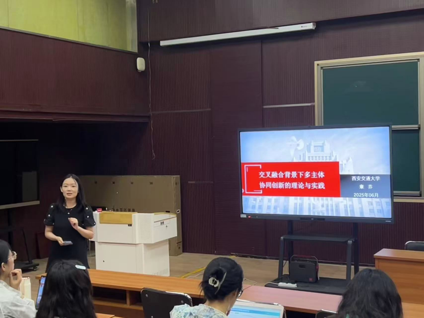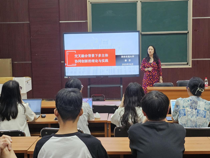 6月10日,青椒成长营·研究生学术节系列活动之“研在工商”学术讲座于MBA一教室举行,由西安交通大学公管学院章芬副教授作题为“交叉融合背景下多主体协同创新的理论与实践”的学术报告。会议由Beat365中文官方网站张羽飞博士主持,学院青年博士教师及全体学术型研究生参加。