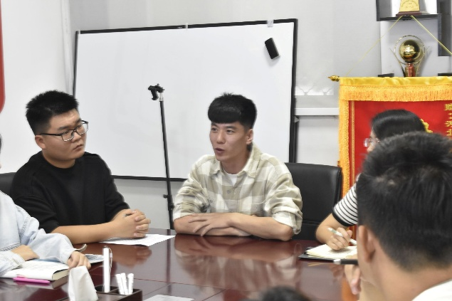 座谈会上,两位学生代表先后发言。学院团学融主席团成员张渝晨表示,不仅要认真学习“开学第一课”精神,更要做校史文化与朋辈力量的传播者和践行者,以“扎根”与“传递”为重心,争做与时代同行的“新经贸人”。学生党员胡国庆表示,将牢记李书记嘱托,以昂扬姿态践行“强国有我”的誓言,在思想引领和服务同学中坚守初心,通过朋辈互助实现共同成长,展现青年担当。随后,同学们结合个人体会,从专业学习、责任担当、校史传承等角度分享心得,表达了夯实专业基础、践行使命担当、传递青春力量的决心,体现了工商学子在思想与行动上的深刻感悟与成长规划。