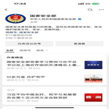 利用线上新媒体推广“国家安全部”公众号