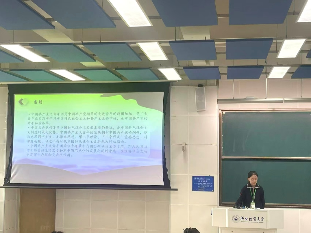 紧接着,团委事务组织中心副部长郑博旭则以习近平新时代中国特色社会主义思想为核心,从时代背景切入,深入解读“十个明确、十四个坚持、十三个方面成就”的核心要义、精神实质与实践要求,引导青年学子把握其中的马克思主义立场、观点与方法,明确新时代青年的责任担当。