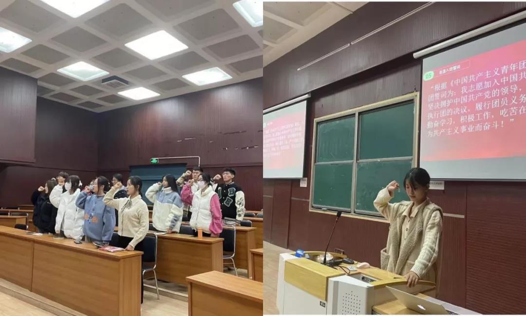 随后,优秀团员张树嘉、张靖轩、刘宁馨结合团支部工作和个人实际交流本次专题生活会的心得体会。最后,大家一起重温庄严而又肃穆的入团誓词。