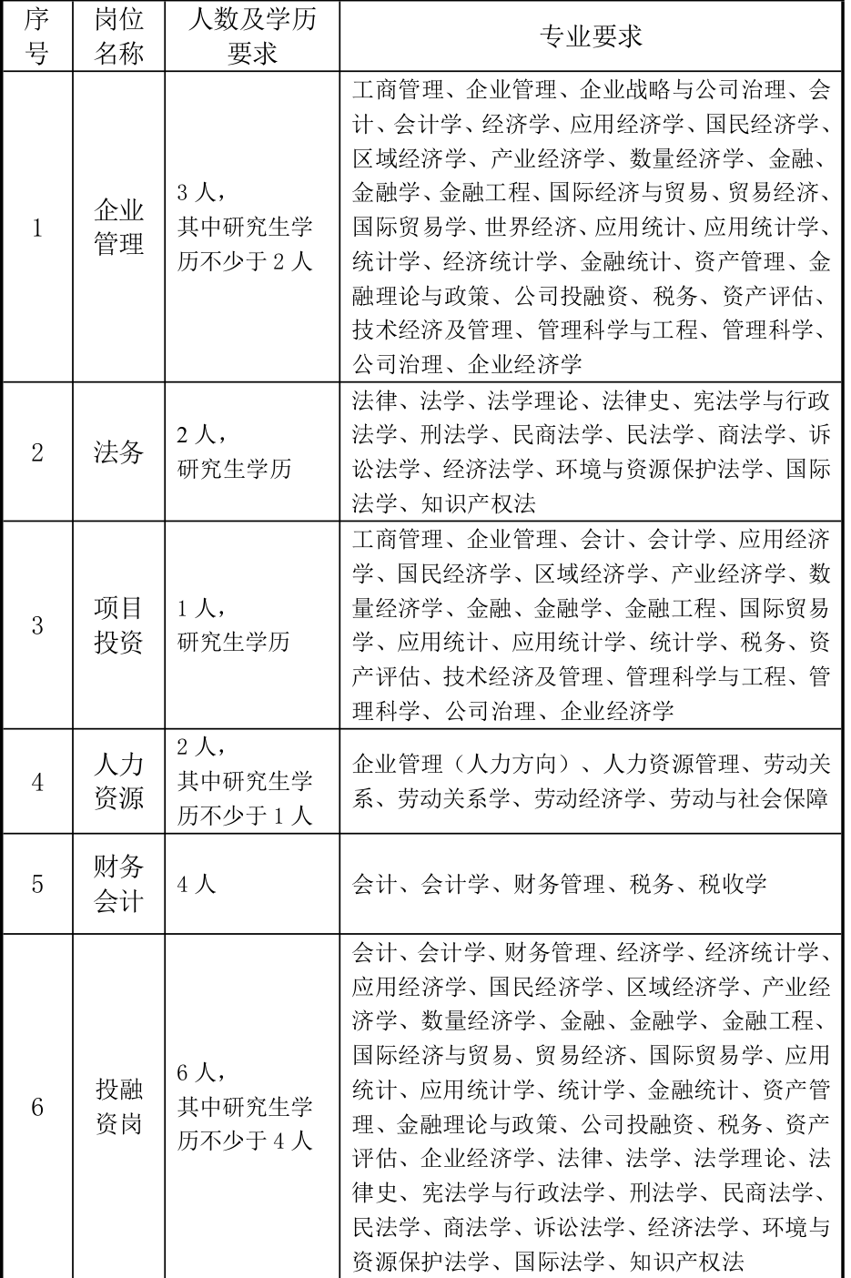 (一)招聘人数及岗位条件