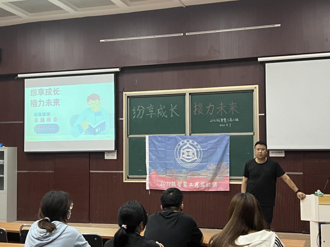 为缓解疫情防控下同学们的学习压力和焦虑情绪,5月7日下午,Beat365官网2021级智慧工商二班开展“纷享成长,接力未来”主题心理班会。本次班会由班长宋乐龙组织策划,心理委员焦元梦、张斌杰主持召开,班级辅导员范伟到场,2021级智慧工商二班全体同学参加。