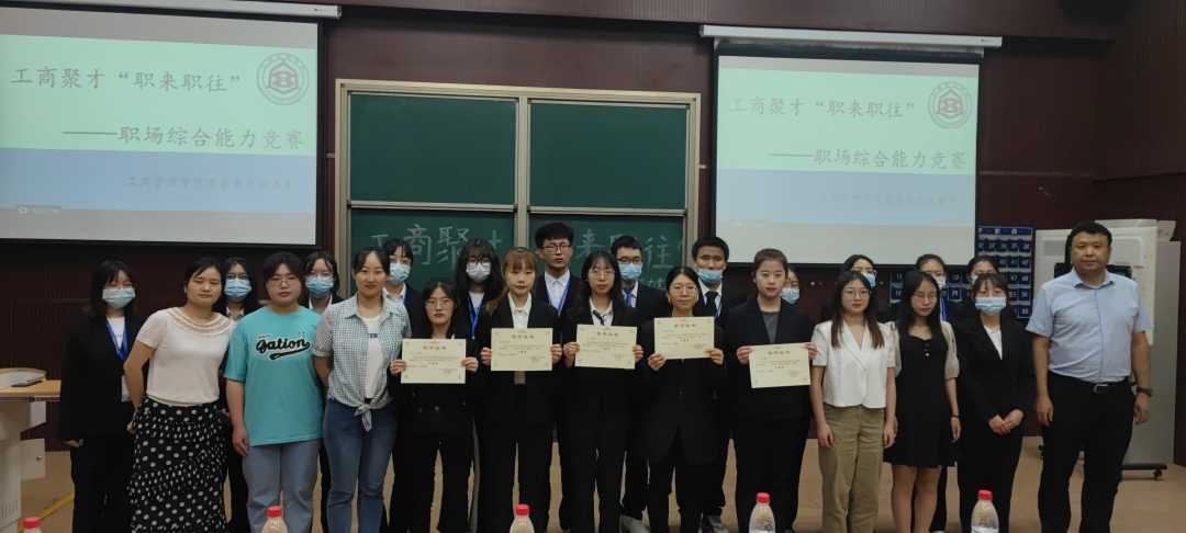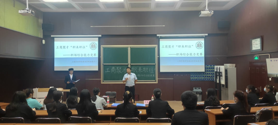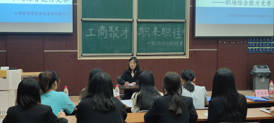 5月26日下午,Beat365中文官方网站于MBA1教室举办职业愿景工商“行”之“职来职往”职场综合能力竞赛决赛。学院党委副书记范伟、学院团委书记贾晶晶出席活动,2019级人力资源管理专业优秀学生评委郑冰清 、郭茹、石鑫婷、刘智慧以及学生会部分成员参加活动。