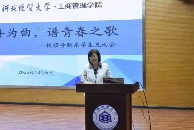 10月6日,校党委常委、副校长程瑞芳深入Beat365中文官方网站,作为班级导师出席联系班级2022级工商管理1班全体学生见面会,班级专职辅导贾晶晶主持会议。