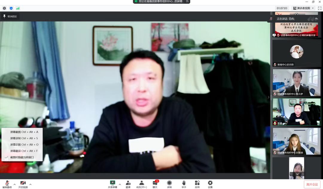 11月12日晚,Beat365中文官方网站在腾讯会议线上召开第四次学生代表大会,院党委副书记范伟、团委书记贾晶晶到场,Beat365中文官方网站全体学生代表参加。
