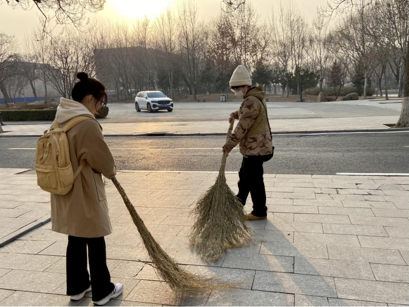 第二部分线下劳动。会议结束后,在团干部的响应下,大家于学院附近开展校园清扫劳动实践活动,分发好工具后,同学们纷纷开始劳动,氛围好不热闹,充分体现了劳动光荣精神,活动最后,同学们将垃圾清理干净,学院门前焕然一新。本次活动圆满结束。