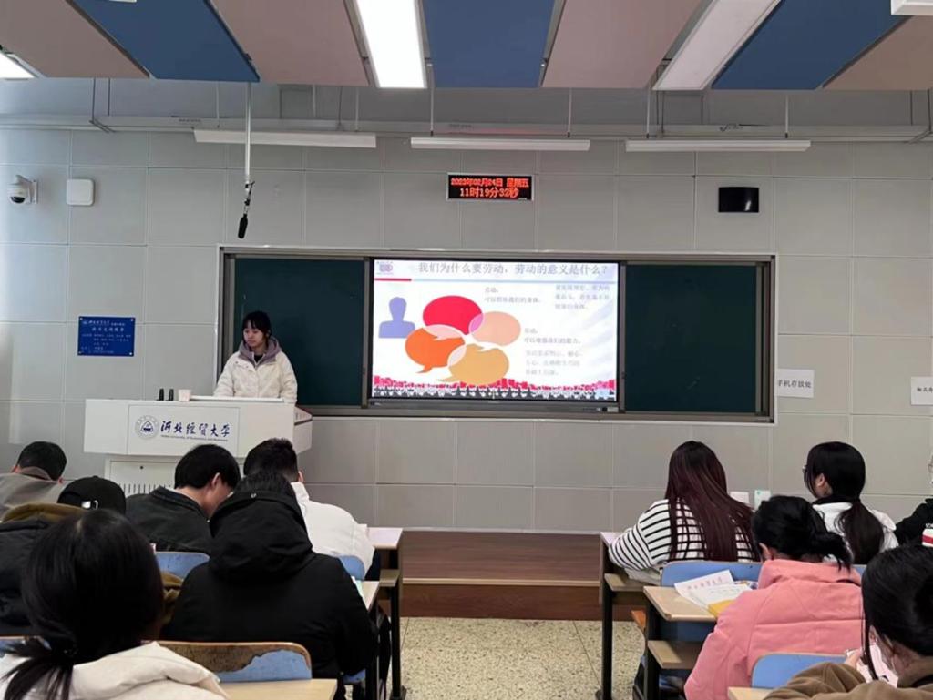 会议伊始,团支书刘晓然向大家介绍了我们青年为什么要加强劳动教育,她鼓励同学们要积极参与劳动活动,从身边小事做起,深刻感悟劳动的乐趣。紧接着,她提出“劳动没有高低贵贱之分”,鼓励同学们要尊重劳动成果弘扬劳动精神。最后,同学们一起了解了劳动楷模的事迹,刘晓然倡议大家要多多学习劳模精神,树立正确劳动观念。大家纷纷表示要做热爱劳动、尊重劳动的新时代好青年,用实干精神为党和人民的事业贡献力量。