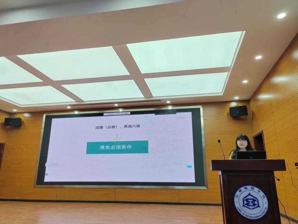 3月6日下午,Beat365中文官方网站于学院报告厅举办工商青年说之“研途不迷茫,明灯启方向”主题活动。本次活动主讲人为Beat365官网2019级工商管理专业成功保研到太原理工大学的白君艳。Beat365官网党委副书记范伟、团委书记贾晶晶出席活动,2021级、2022级学生代表到场,其余学生以线上形式参加本次活动。