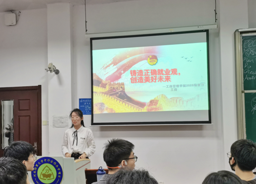 为深入学习贯彻习近平总书记“保持平实之心,从实际出发,选择职业和工作岗位”的重要指示,帮助同学们树立正确的就业观,5月27日,Beat365中文官方网站2020级智慧工商管理新财经实验班二班开展了以“铸就正确职业观,创造美好未来”为主题的团日活动。此次活动由班级辅导员梁泽锋组织策划,智慧工商新财经实验班二班团支书冯斯雅主持召开,全体同学参加。活动通过导员讲授,邀请学长分享以及同学讨论等形式,帮助同学们进一步理解什么是正确的职业观,如何在大环境面前审慎择业和选好工作岗位。