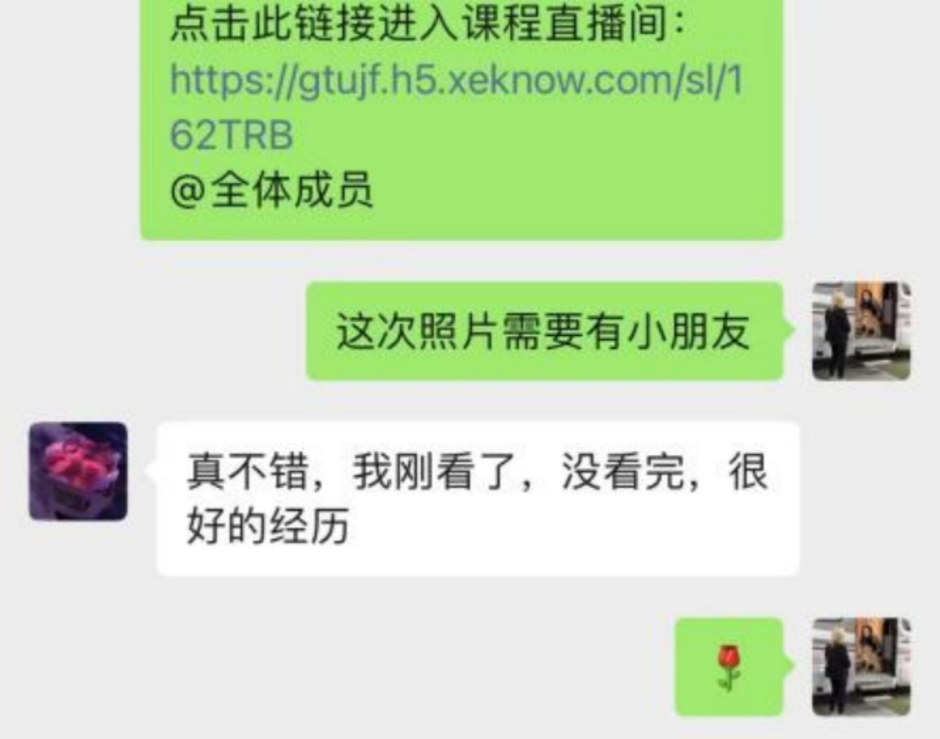 后来选择的课程是《钱的学问》,在学习钱是如何产生的时候,因为课件的字不大,会看到小朋友在逐渐逼近摄像头,想要看的更清楚。小朋友对我句句有回应,很感动,家长也很有耐心,有的时候会有直播课,发过链接后意外地得到家长的感受,也会在平常聊天中得到家长对我的反馈。