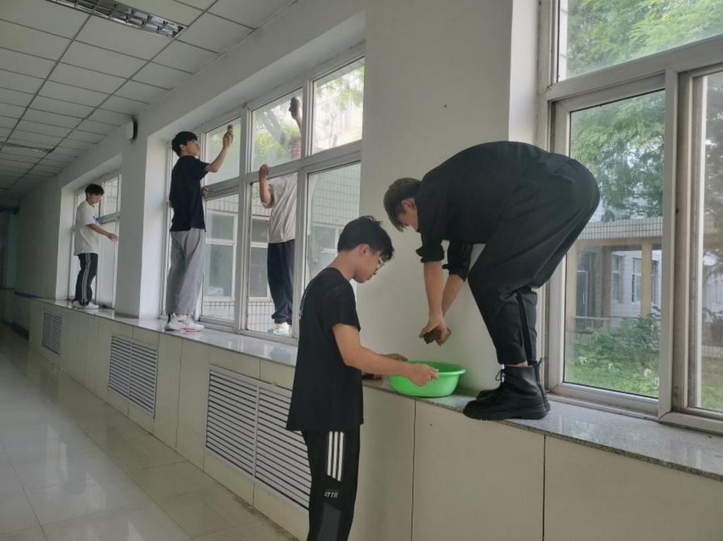 同学们负责打扫学院门口、擦净廊道窗户玻璃、清洗纱窗、擦除学院及其它单位牌匾上的尘土、清扫和拖洗地面,同学们积极参与,分工明确,互相配合,工作开展得井然有序。在义务劳动的过程中,同学们秉承着不怕脏不怕累的精神,手持抹布、拖把,仔细认真地将学院的各个角落都打扫干净。经过大家一下午的辛苦努力,学院已经变得焕然一新,同学们自觉地遵守团队秩序,积极传承和发扬了青年学生吃苦耐劳的精神品质。同学们纷纷表示,此次活动让他们充实了自己的大学生活,看到学院一点一点在他们共同的努力下变得干净,让他们体会到了劳动的快乐与奉献的意义。