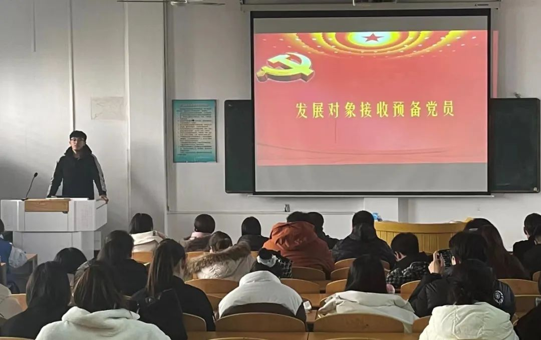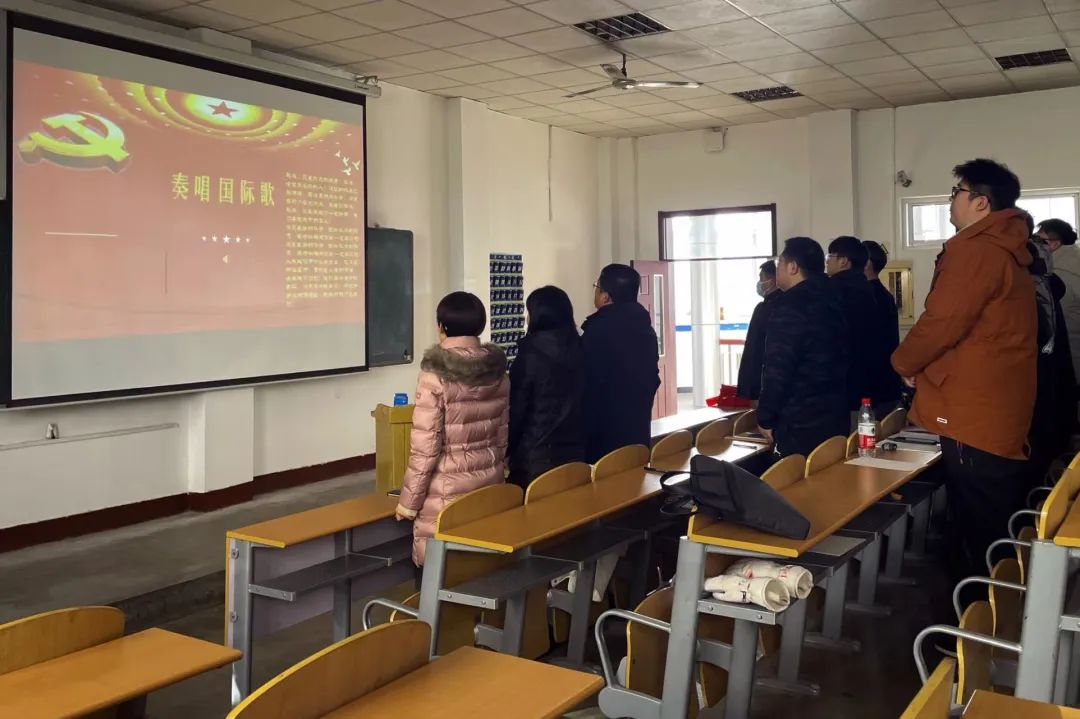 首先,赵靓丹宣布支部大会正式开始并介绍两项会议议程。随后,同学们和老师们一起奏唱国际歌。接着大会开始讨论预备党员转为正式党员、接收发展对象转为预备党员的议题。入党积极分子和预备党员从入党动机、对党的认识及自身学习、生活、生活等方面进行了汇报,入党介绍人马章山老师、宋欣老师、贾晶晶老师、李海燕老师、宋魁峰老师分别对其所带班级的入党积极分子和预备党员在发展、预备期间的表现进行了评议,并给出了具体建议,希望他们以政治身份的转变为契机,明确自己身上所肩负的责任和使命,不断提高自己的政治觉悟和思想境界。老师们均认为汇报的入党积极分子和预备党员符合进入中国共产党的条件,同意入党积极分子进入预备党员序列与预备党员转为正式党员的请求。