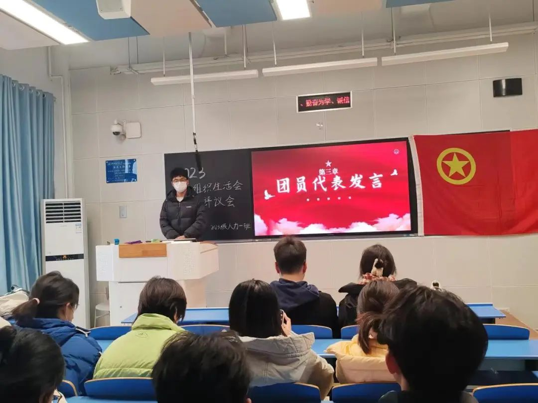 会议伊始,团支书宋泓霏向同学们讲述了团歌的历史,并带领全体团员齐唱团歌,调动了同学们的参与热情,提高了班级成员的凝聚力。紧接着,团支书汇报今年开展团员和青年主题教育实践活动情况,重点强调了学习贯彻习近平新时代中国特色社会主义思想情况和组织生活会准备情况。随后,团支书带领团员们通过学习教育、自我评价和组织评议相结合的方式,对各自的表现和作用发挥情况做出综合评价,全体团员积极参与,认真总结。最后,全体团员重温入党誓词,激发了团员时代感和责任感,时刻牢记自己作为新时代青年的历史使命,为中华民族伟大复兴而努力奋斗。