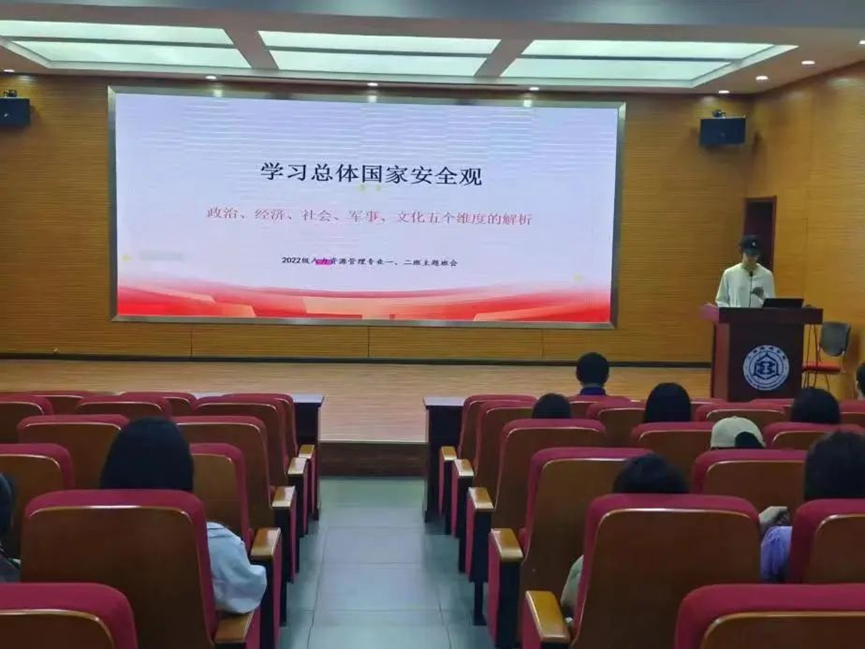 为深入贯彻落实习近平总书记关于加强国家安全教育的重要指示精神,引导学生进一步增强国家安全意识和法制观念,4月22日下午,2022级人力资源管理专业一班、二班召开“学习总体国家安全观,增强法制观念”主题班会。本次班会由辅导员李永峰组织策划,班长秦培召主持,2022级人力资源管理一班、二班全体同学参加。