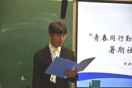 随后,青年实践团代表们依次展开分享,细致阐述了暑期社会实践期间的探索与收获。刘树状回溯从校园到基层的成长轨迹,以自身体悟激励学子躬身实践;袁盛杰直击乡村产业痛点,依托农产品电商推广案例,提出具有可行性的乡村振兴路径,彰显理论赋能的务实担当;宋泓霏则在政策宣讲、文化科普等志愿服务中深耕细作,以青春担当为基层发展注入力量。
