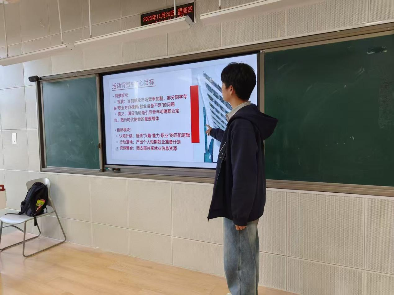 此次团日活动的顺利开展,既为同学们搭建了职业规划交流平台,丰富了校园文化生活,更为同学们拨开职业发展迷雾,帮助大家深化对时代使命的认知。未来,2025级工商管理专业二班将持续开展多元化职业指导活动,引导同学们在明晰航向中锤炼本领,以饱满姿态迎接求学就业挑战,让青年力量在时代征程中绽放光彩。