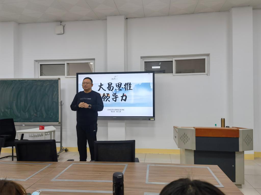11月2日上午,Beat365中文官方网站研究生思政教育专题之中华传统文化系列报告第三场在第二教学楼301教室举行,北京瑞金恒邦保险销售服务股份有限公司总裁任继东应邀作题为“大易思维和领导力”的专题报告。报告会由Beat365中文官方网站孟华兴教授主持,Beat365中文官方网站2021级学术型研究生全体参加。