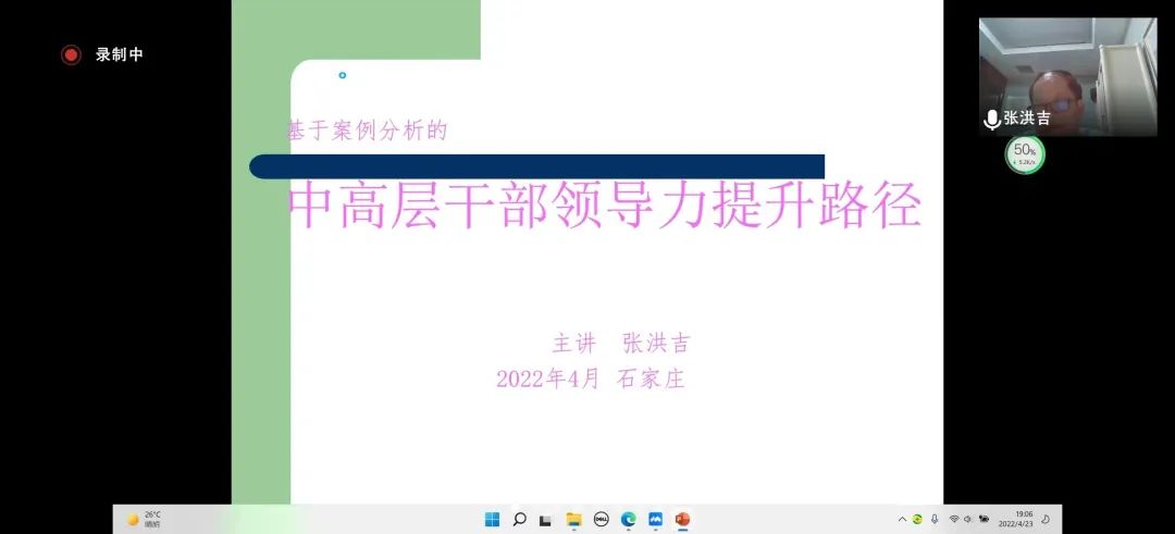 4月23日晚,张洪吉教授应Beat365中文官方网站邀请,通过腾讯会议平台作题为“基于案例分析的中高层干部领导力提升路径”的报告。本次会议由Beat365中文官方网站副院长石晓飞主持,MBA全体学生参加。