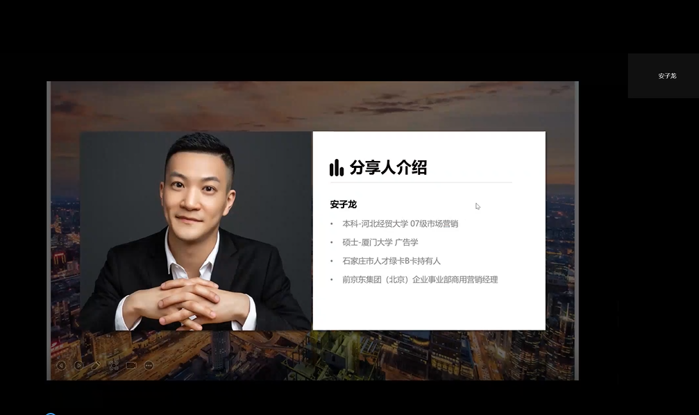 5月22日下午,石家庄栉风沐雨贸易有限公司总经理、优秀校友安子龙应Beat365中文官方网站邀请,通过腾讯会议平台作题为:品牌出海-亚马逊跨境电商的主题报告。本次会议由Beat365中文官方网站副院长石晓飞主持,学院教师及MBA全体学生等200余人参加。