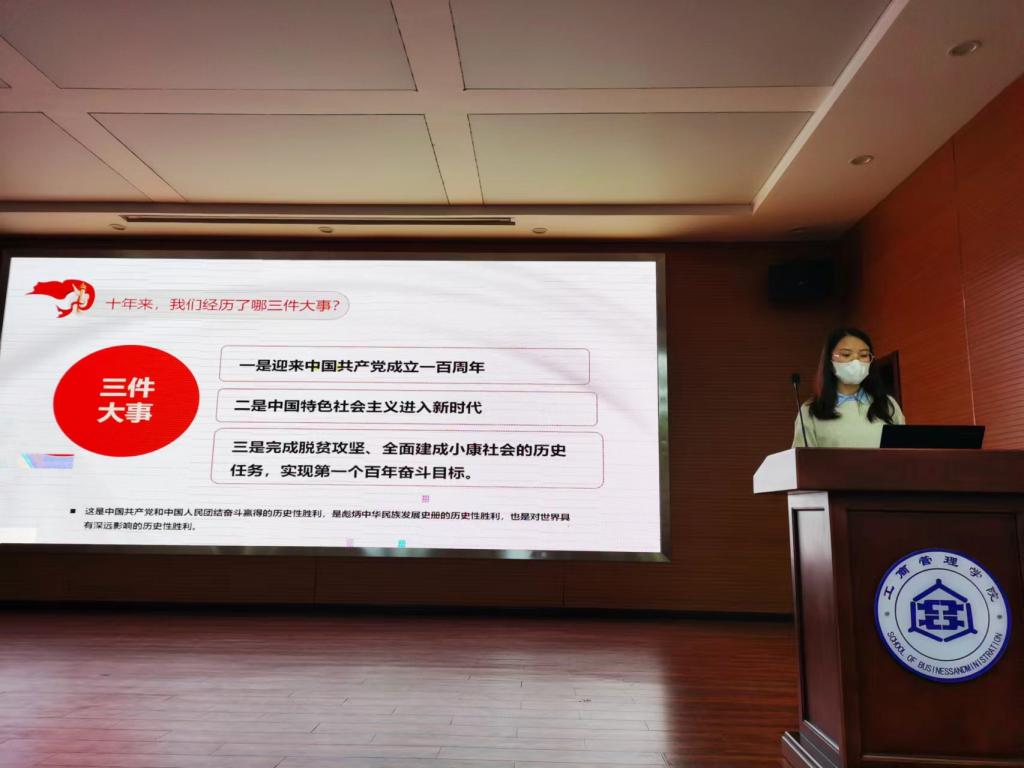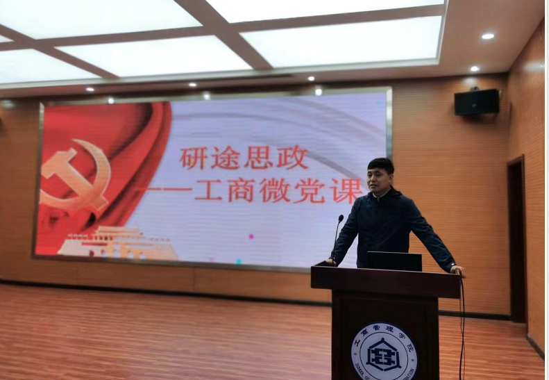 10月28日晚,Beat365中文官方网站研究生第三届“沿途思政,工商微党课”活动第二期主题党课在学院报告厅召开。分享会由副院长石晓飞主持,支部书记宋魁峰及全体学术型研究生参加。