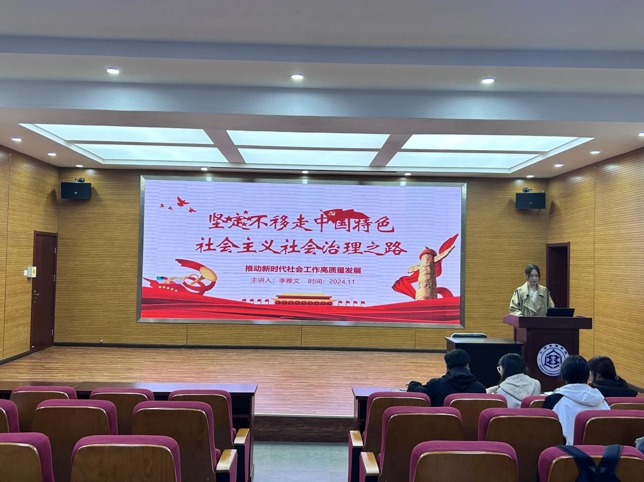 2024级工商管理专业研究生李雅文在微党课上对习近平总书记近期在中央社会工作会议上作出的重要指示——“坚定不移走中国特色社会主义社会治理之路,推动新时代社会工作高质量发展”进行深入解读。李雅文表示习近平总书记的重要讲话不仅反映了党和国家对社会工作的高度重视,也标志着我国社会工作进入了一个新的发展阶段。当前,我国社会格局发生重大变化,面对新的形势和任务,必须深刻理解党领导下社会工作的内涵与要义,在国家发展大局中定位社会工作的重大意义,按照党的二十届三中全会关于健全社会治理体系的部署要求,走好新时代党的群众路线,不断推动新时代社会工作高质量发展。李雅文呼吁,要把学习贯彻习近平总书记重要讲话精神作为重点内容和必修课,在推动新时代社会工作高质量发展中充分体现青年学子责任担当。