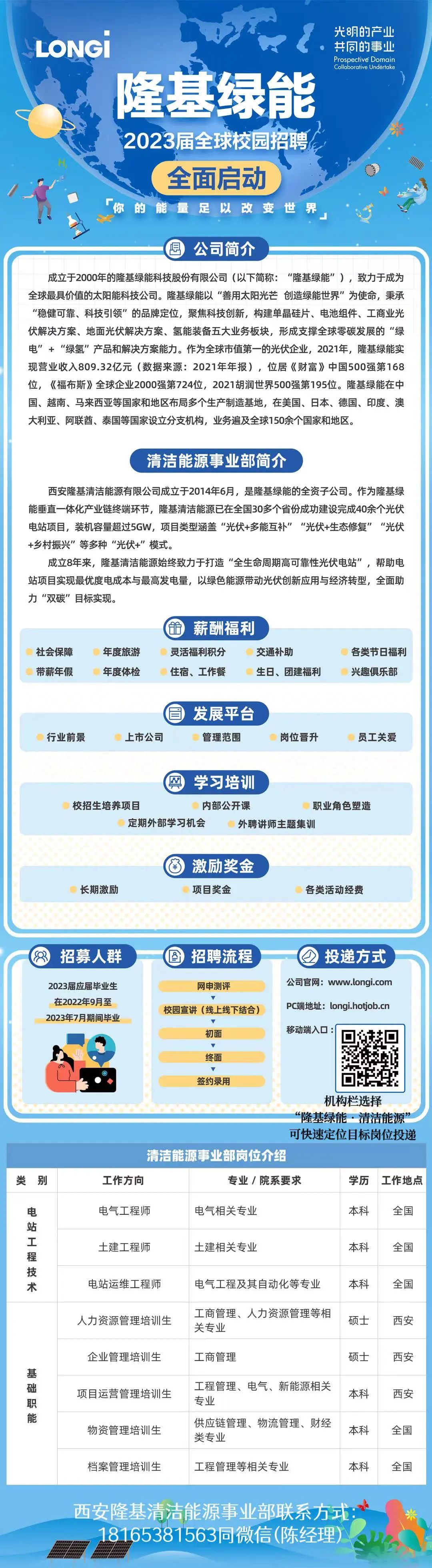 校园招聘早知道(一百七十五)||西安隆基清洁能源有限公司招聘简章