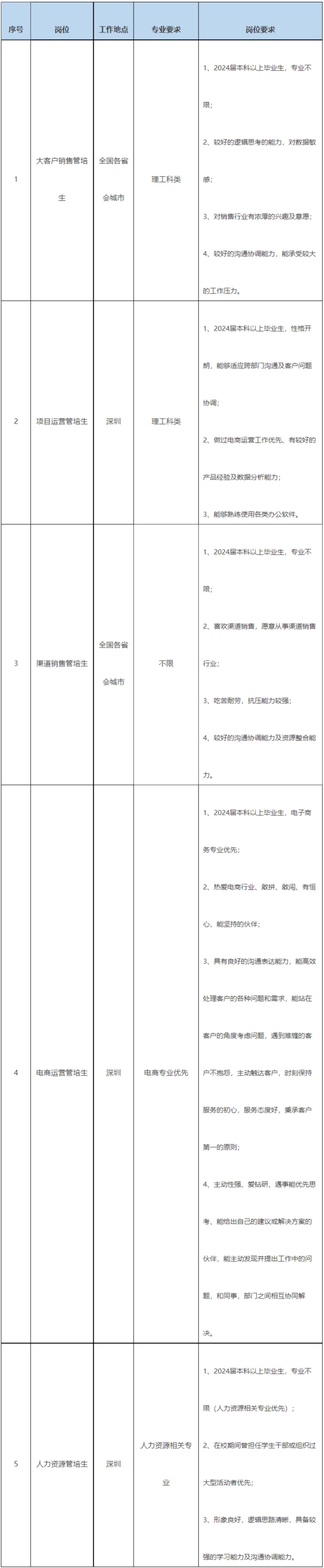 4. 管培生入职交通补贴:管培生正式入职可报销到深交通费(按高铁二等座标准,最高报销700元,低于报销标准,按实际报销);
