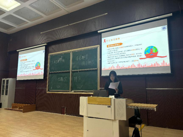 活动最后,强滕润同学强调检测与治疗的重要性。及时的检测可以在早期发现感染,科学的治疗则能有效抑制病毒,改善患者的生活质量。她呼吁同学们要牢记防艾知识,从自身做起,坚持健康文明的生活方式和良好的卫生习惯,并理解温暖他人,用爱心和行动为艾滋病患者营造尊重、友爱的社会氛围。