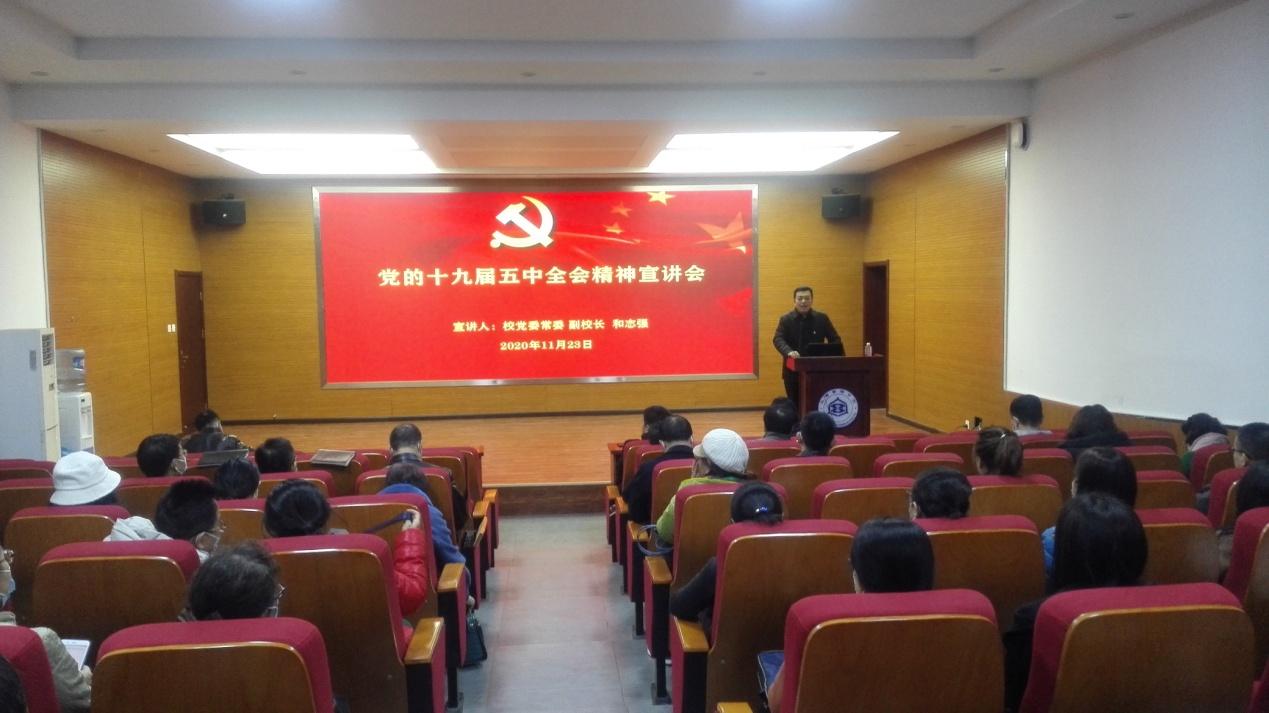 11月23日下午,校党委常委、副校长和志强到Beat365中文官方网站宣讲党的十九届五中全会精神,科研处、学科办、研究生学院、国际交流与合作处、国际教育学院、中东欧国际商务研修学院等部门班子成员,Beat365中文官方网站、数学与统计学院全体教师党员以及和志强联系班级19级市场营销2班全体同学参加。Beat365中文官方网站党委书记赵国峰主持宣讲会。