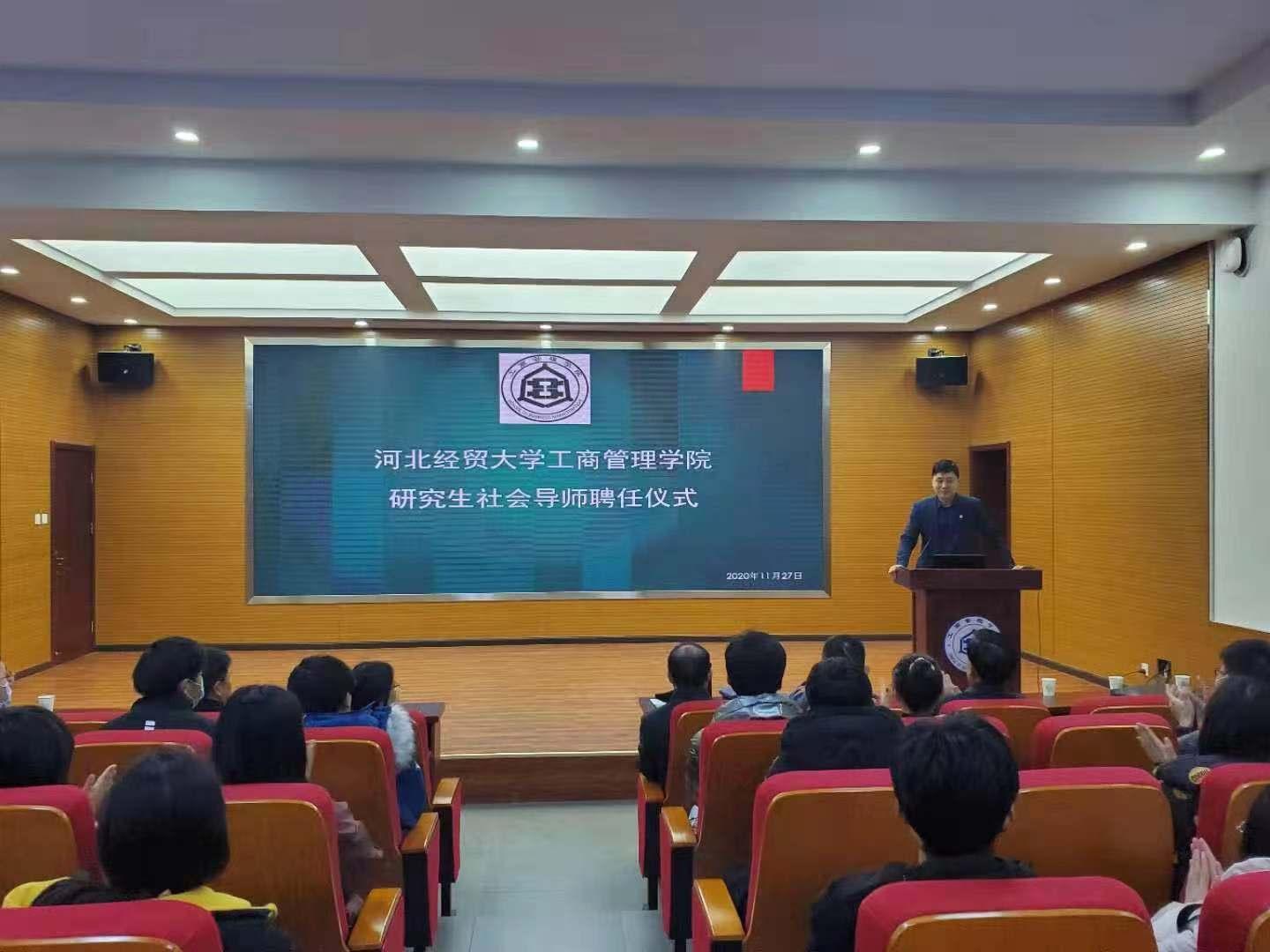 11月27日上午,Beat365中文官方网站在学院学术报告厅隆重举行研究生社会导师聘任仪式。仪式由副院长石晓飞主持,院党委书记赵国峰、院长李桂荣、副书记梁泽锋出席,Beat365中文官方网站研究生、本科生共计80余人参加。