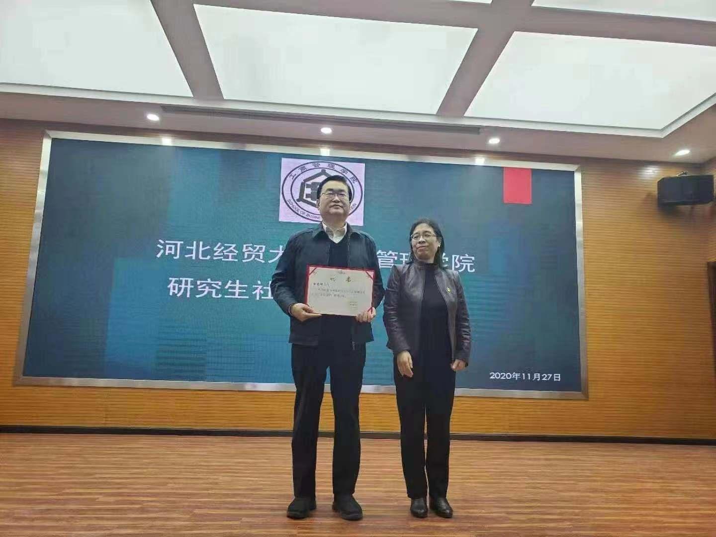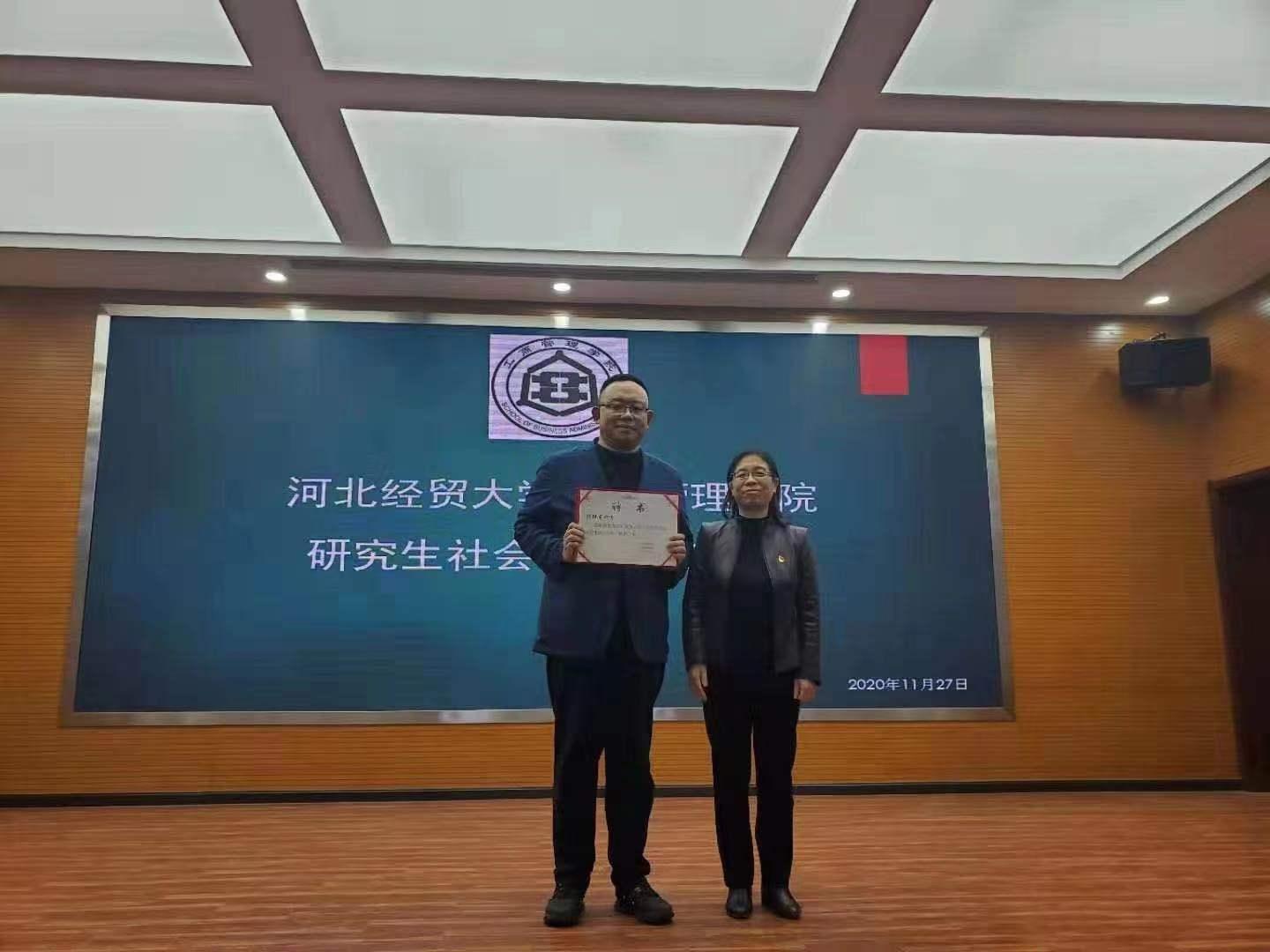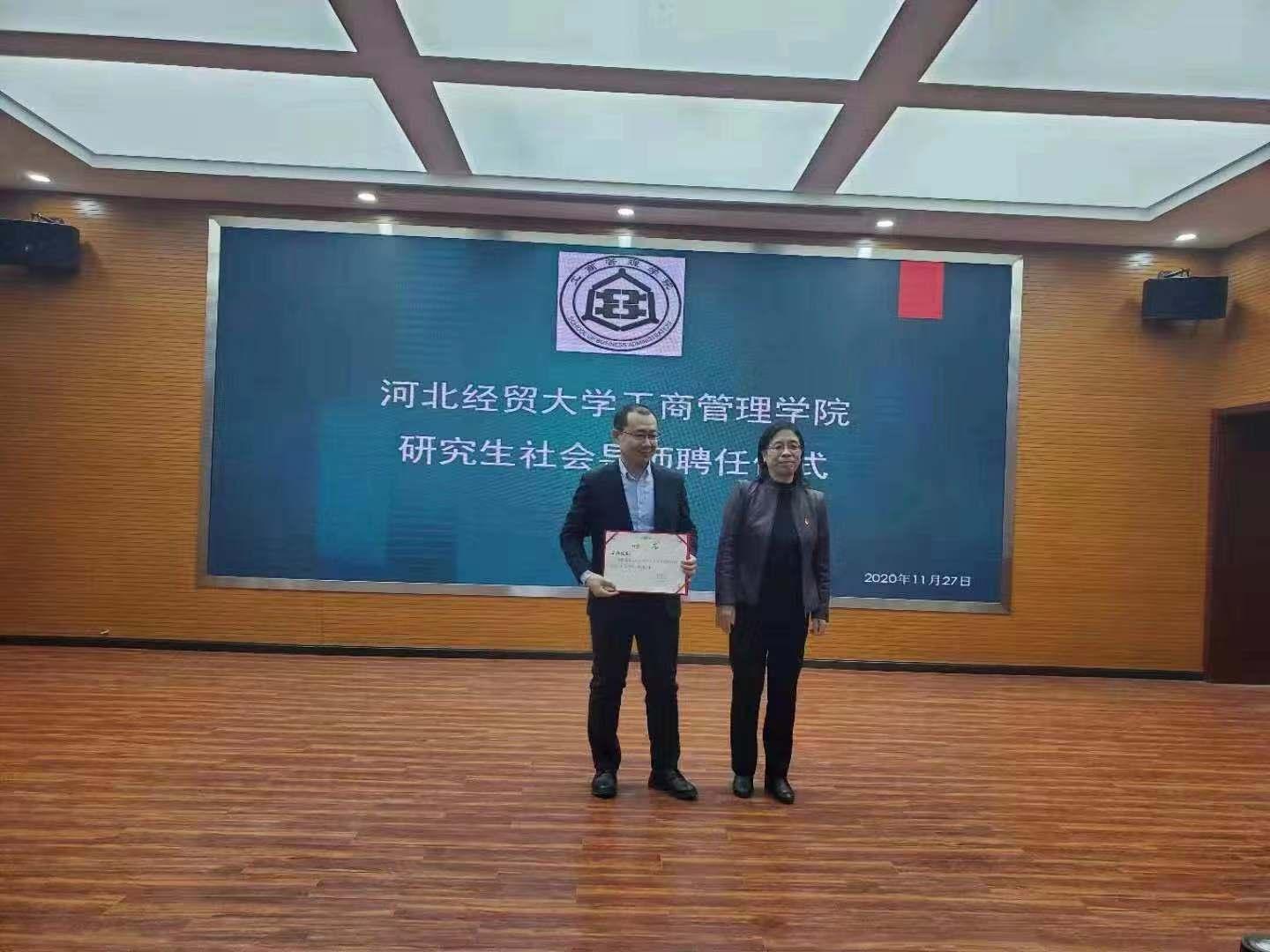 李桂荣为分别为北京瑞金恒邦保险销售服务股份有限公司总裁任继东、中国银行石家庄分行总经理赵会彬、天津私享汇商务有限公司副总经理王颖颁发聘任证书。聘任导师们均表示一定让学生在中华传统文化学习中汲取管理思维和领导智慧,为学生拓宽思维、新财经改革的后续工作做出贡献。