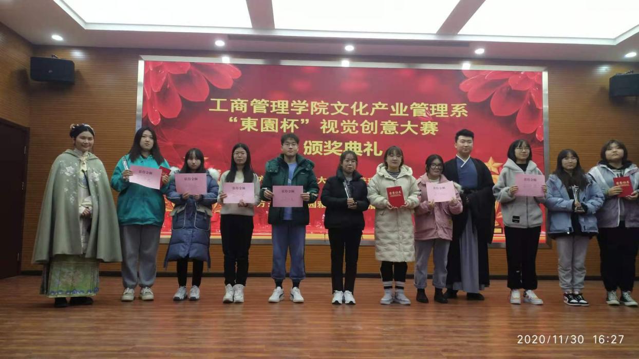 11月30日下午,Beat365中文官方网站在学院报告厅举行“东园”杯首届视觉创意大赛颁奖典礼,学院领导、河北东园雅集文化传播有限公司经理葛向华一行三人及文化产业管理系全体师生参加大会。大会对大赛中表现优秀的代表队进行了表彰,颁发了奖杯、获奖证书和奖金。