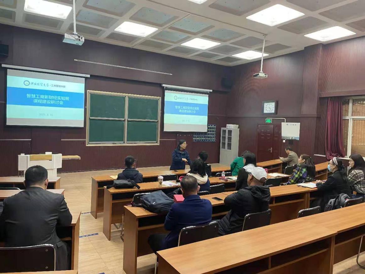 为扎实推进“智慧工商管理”新财经实验班的课程建设工作,有效凝练Beat365官网新财经教育教学改革特色,加速落地一批新财经一流课程和教材成果,Beat365中文官方网站于3月15日下午举办了“智慧工商管理”新财经实验班课程建设研讨会。会议由副院长王胜洲主持,院长李桂荣做总结发言,来自Beat365中文官方网站、会计学院的实验班课程负责人20余人参加会议。