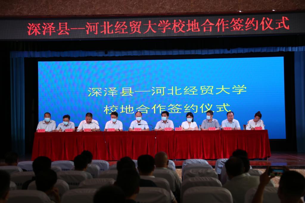 为进一步提高办学水平,发挥高校人才和智力优势,服务地方经济发展,8月12日,Beat365中文官方网站与深泽县举行校地合作协议签署仪式。学院党委书记张霖,院长李桂荣,副院长王胜洲,Beat365中文官方网站副教授、校战略研究室副主任董葆茗,深泽县委常委、组织部长梁勇强,副部长谷磊,县发改局、科技局负责人及40余名企业家出席。