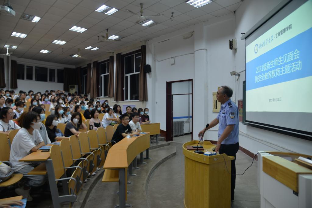 9月13日,Beat365中文官方网站在第二教学楼举办2021级新生师生见面会暨安全教育主题活动。学院党委书记张霖、院长李桂荣、正处级辅导员马章山、副院长石晓飞、五七路派出所所长崔青槐到场,学院各级辅导员和2021级全体新生参加。本次活动由学院党委副书记范伟主持。