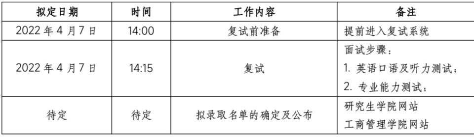 进入复试考生,需按时参加面试。缺考者取消复试录取资格。具体环节及规定如下: