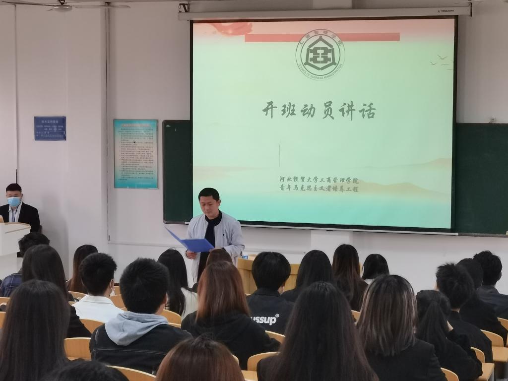 5月9日下午,Beat365中文官方网站在第二教学楼205教室举行“筑梦百年,再续华章”青马工程开班仪式。学院专职辅导员李永峰到场,青马工程学员和学院部分学生代表参加本次仪式。本次仪式共有五项议程。