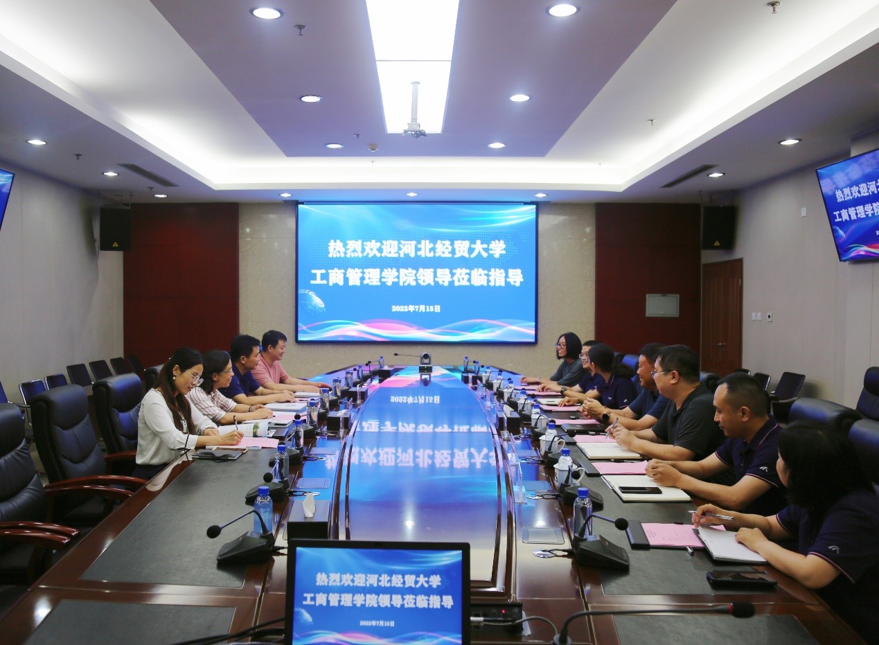 张忠山代表汇通集团对学院领导老师的到来表示热烈欢迎,感谢经贸大学和Beat365中文官方网站为企业“送温暖,送智慧,送人才”。他简要介绍了汇通集团的发展奋斗史,并表达了公司上市后对提高中高层人员管理水平以及高素质大学生人才的迫切需要。他表示,汇通集团“凝聚小家,发展大家,报效国家”的发展理念与经贸大学“严谨为师、勤奋为学、诚信为人”的价值观不谋而合,希望双方持续加强合作,让更多优秀的经贸学子加入汇通集团。