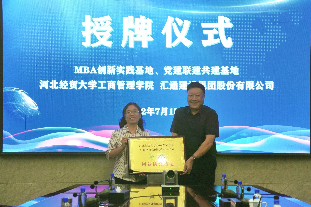 张霖、李桂荣分别代表学院与汇通集团举行“党建联创共建基地”和“MBA教育中心创新研究基地”授牌仪式。双方约定今后将在党建联创共建、MBA人才培养、企业管理人员培训、创新基地建设、学生就业等方面开展紧密深入合作,助力双方高质量发展。